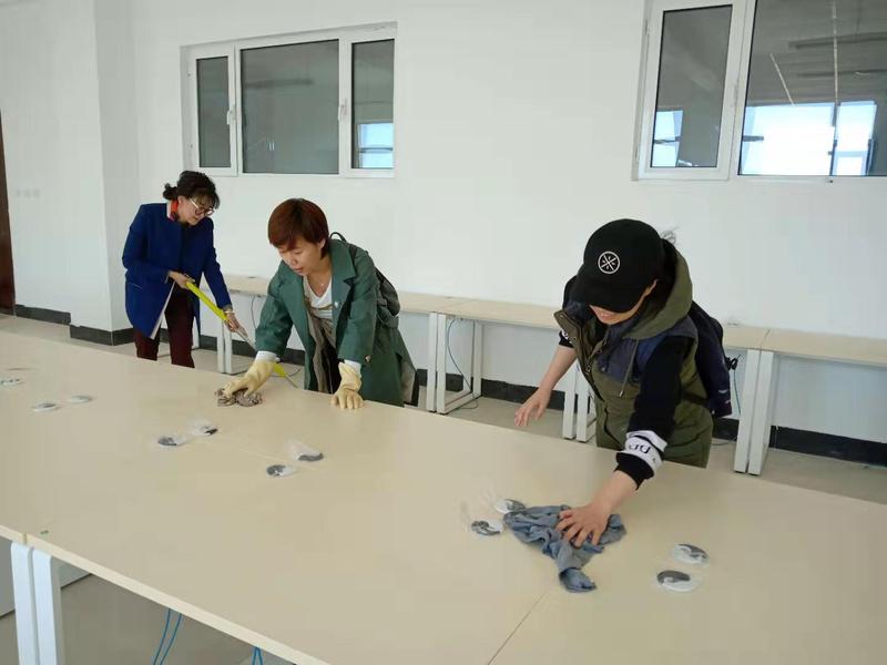 在此次活动中,广播电视编导系各位党员教师自备拖布、抹布、盆等工具,认真细致的将公司公共机房204、208、212、216及430的卫生进行打扫,为10月9日公司公共机房的搬迁工作做了充足的准备。