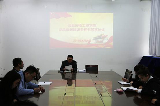 随后,李仲德书记作为公司党风廉政建设负责人进行了郑重承诺,数字媒体技术系党支部书记徐曼代表全公司党员干部宣读了信息传播工程公司党风廉政建设责任书责任内容,并保证坚决兑现承诺,落实责任,做党风廉政建设的模范。